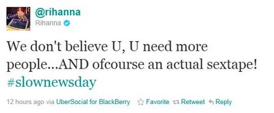 So far, the tweet above is the only response Rihanna has given to the claim…though sources close to her say there’s no sex tape