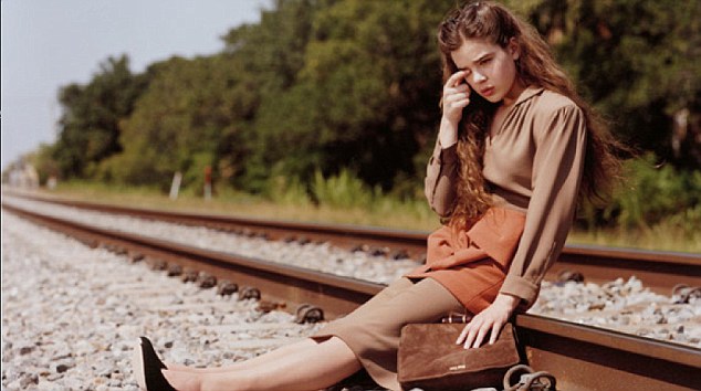 Personally I find it weird that she (a child) is modelling adult clothing, never mind the train tracks!