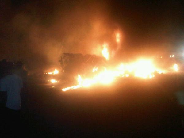 A tanker exploded this morning, burning cars and people – it was reportedly conveying cylinders with chemicals. The fire service appears to have been prompt on the scene. I heard a lot of people are dead but cant confirm yet…continue to see more pictures.