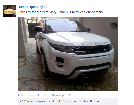 Jason got his wife Mary Remmy (nollywood actress) a Range Rover Evoque for their 2nd anniversary! Some dudes understand how to make a woman happy! Dear future husband, where-ever you are please i hope you’re seeing all these!
