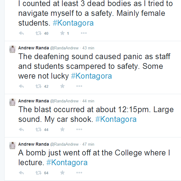 Andrew Randa, A football writer with SuperSports who also lecturers in the school is live tweeting… Read from bottom…