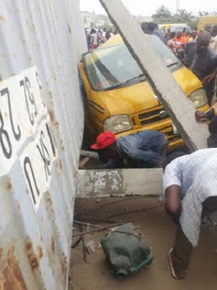 According to eyewitnesses, many people including motorcyclists were trapped under the container, as many were feared dead. Passers-by, who mobilized to help victims of the ghastly accident are still trying to retrieve people from underneath the container.