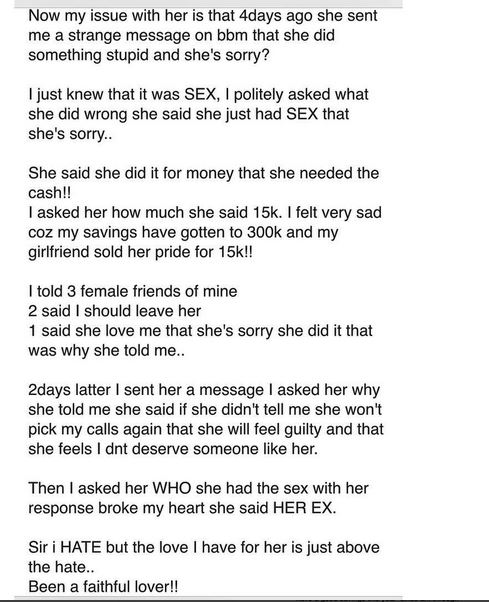 Awww this Nigerian man is heartbroken after his girlfriend had sex with someone else for N15,000.