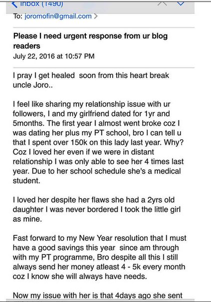 The man who has been financially assisting his girlfriend who is a student has cried out to relationship adviser Jorom Olumofin about how she had s*x with her ex boyfriend for N15,000.