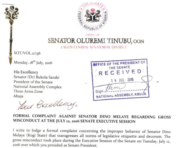 In some official letters released by SaharaReporters, the former first lady of Lagos state, has written to the APC national leadership as well as the President of the Senate, Bukola Saraki, asking for sanctions against Dino Melaye.