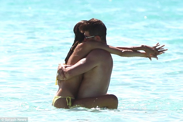 The shirtless 39-year-old was photographed kissing model April Love Geary in the water, wrapping his arms around her back as she threw hers around his shoulders.