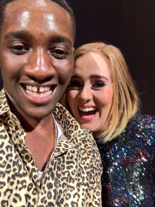 Adele pulled him up on stage and when he told her he came all the way from Nigeria she hugged him and they both leaned in for a kiss on the cheek but ended up with an awkward half-kiss on the lips.