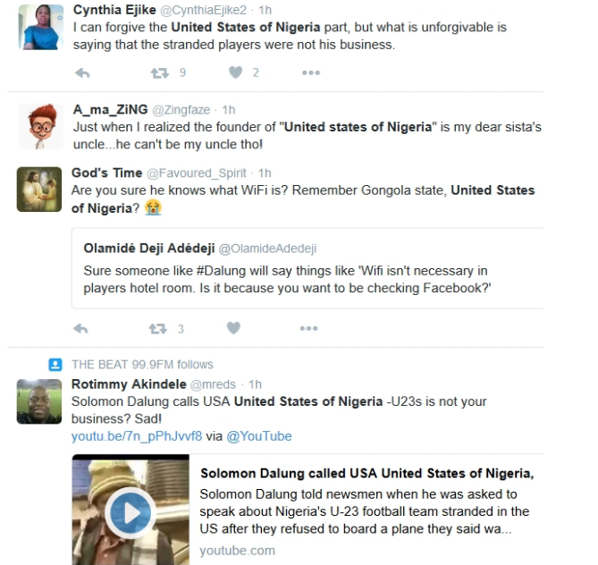 Nigeria’s Minister for Sports, Solomon Dalung, is currently trending on social media, after he called the USA, ‘The United States of Nigeria’ on live television.