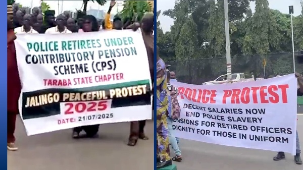In Taraba, the protest took place in the state capital, Jalingo, where retired officers marched with placards and banners.
